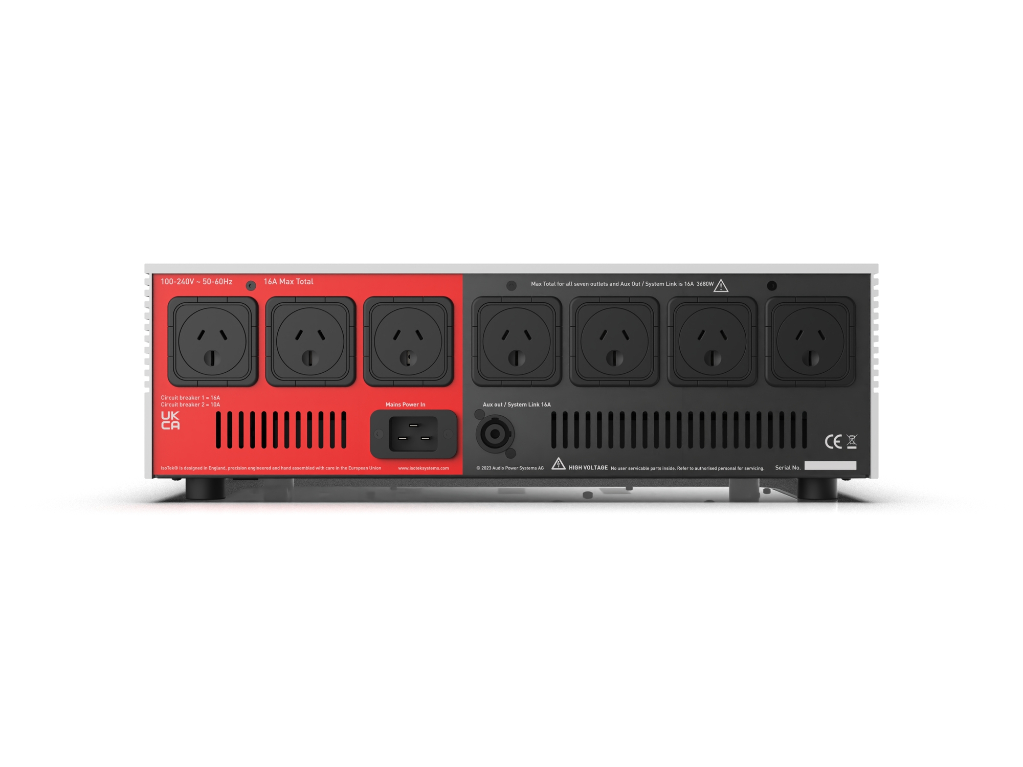 System Link outlet, this is designed to connect multiple units together, maintaining a starred earth reference, and preserving the need for multiple wall outlet sockets.