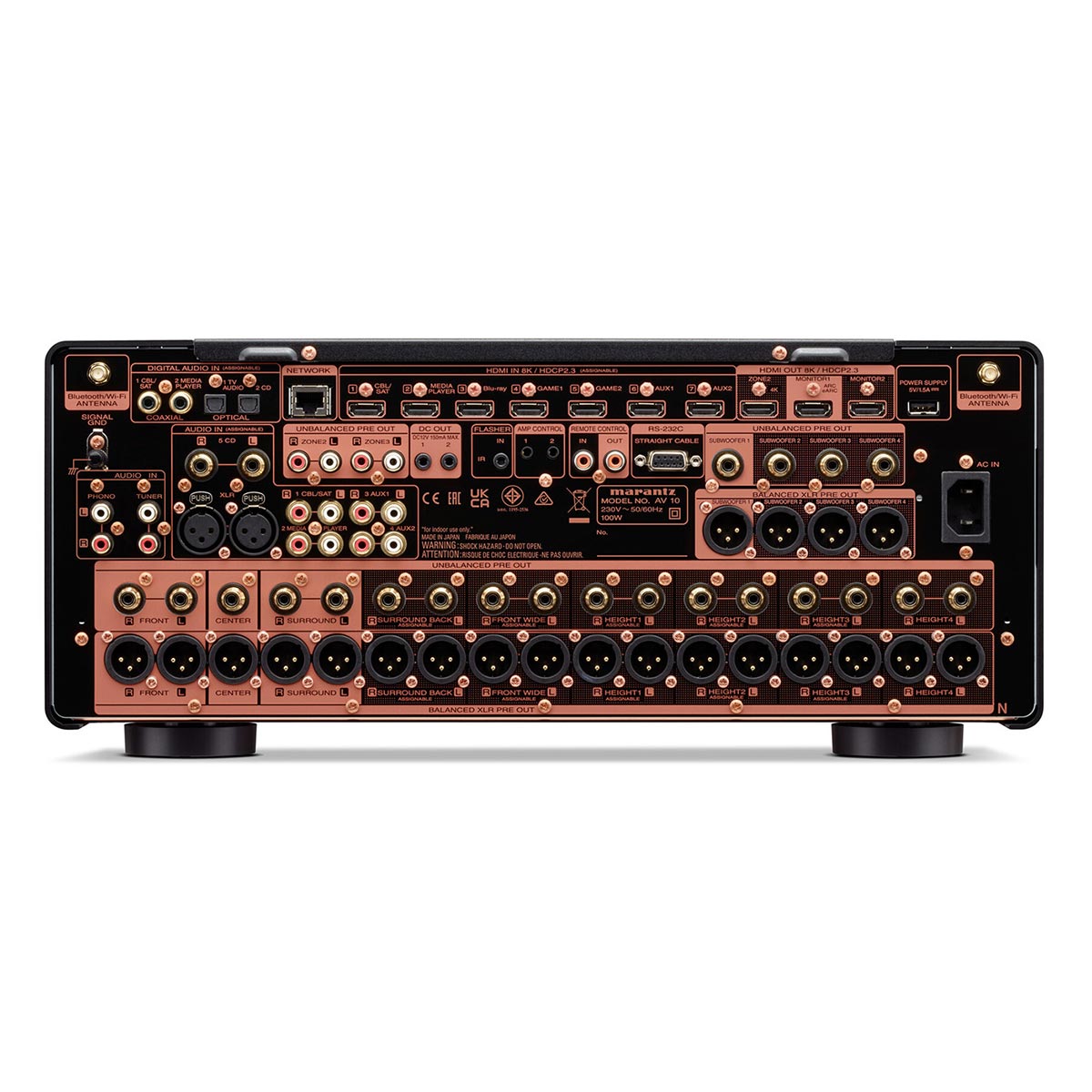 - Exquisite design: A modern expression of timeless design principles, AV 10 features the iconic Marantz porthole, premium materials, and subtle sidelights that illuminate the front panel.
