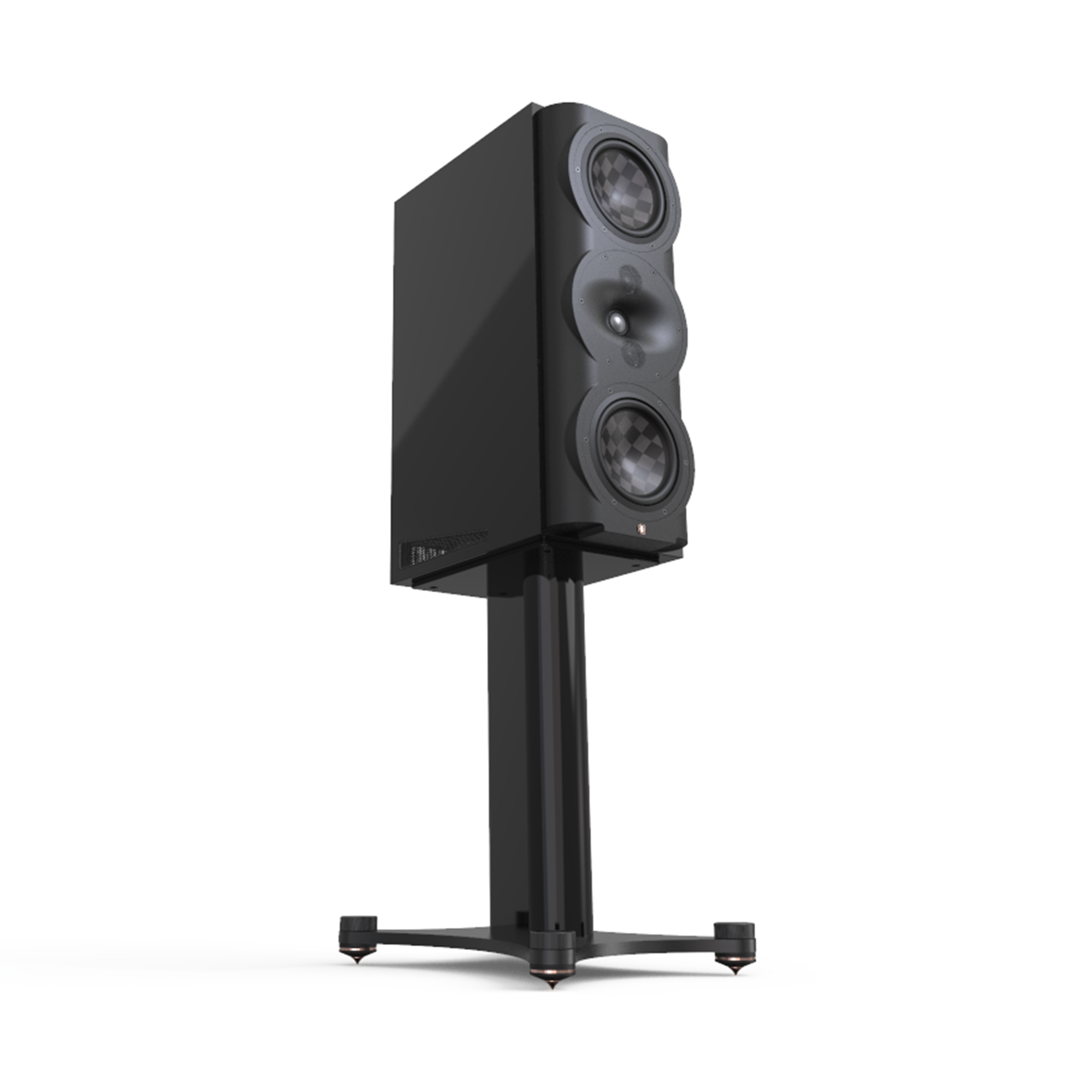 Custom bass drivers made from thin-ply carbon diaphragms (TPCD) can be configured as bass reflex or acoustic suspension and adjusted for listener preference. Unparalleled dynamic range, low distortion and musical finesse.